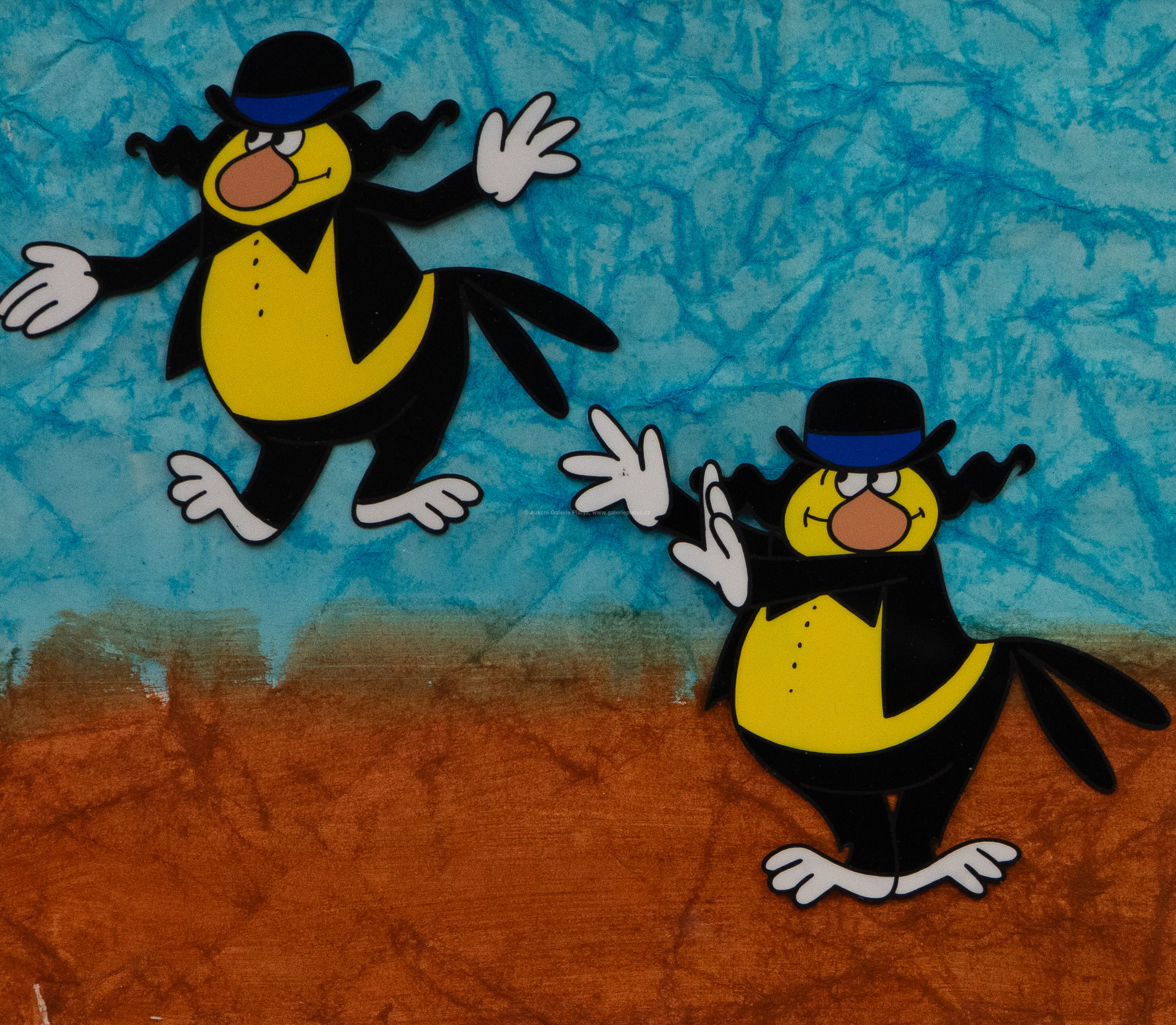 kombinovaná technika/akvarel/ultrafán/filmová fáze, rozměr ve výřezu 23 x 26,5 cm, neznačeno, paspartováno, zaskleno, rámováno